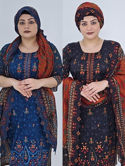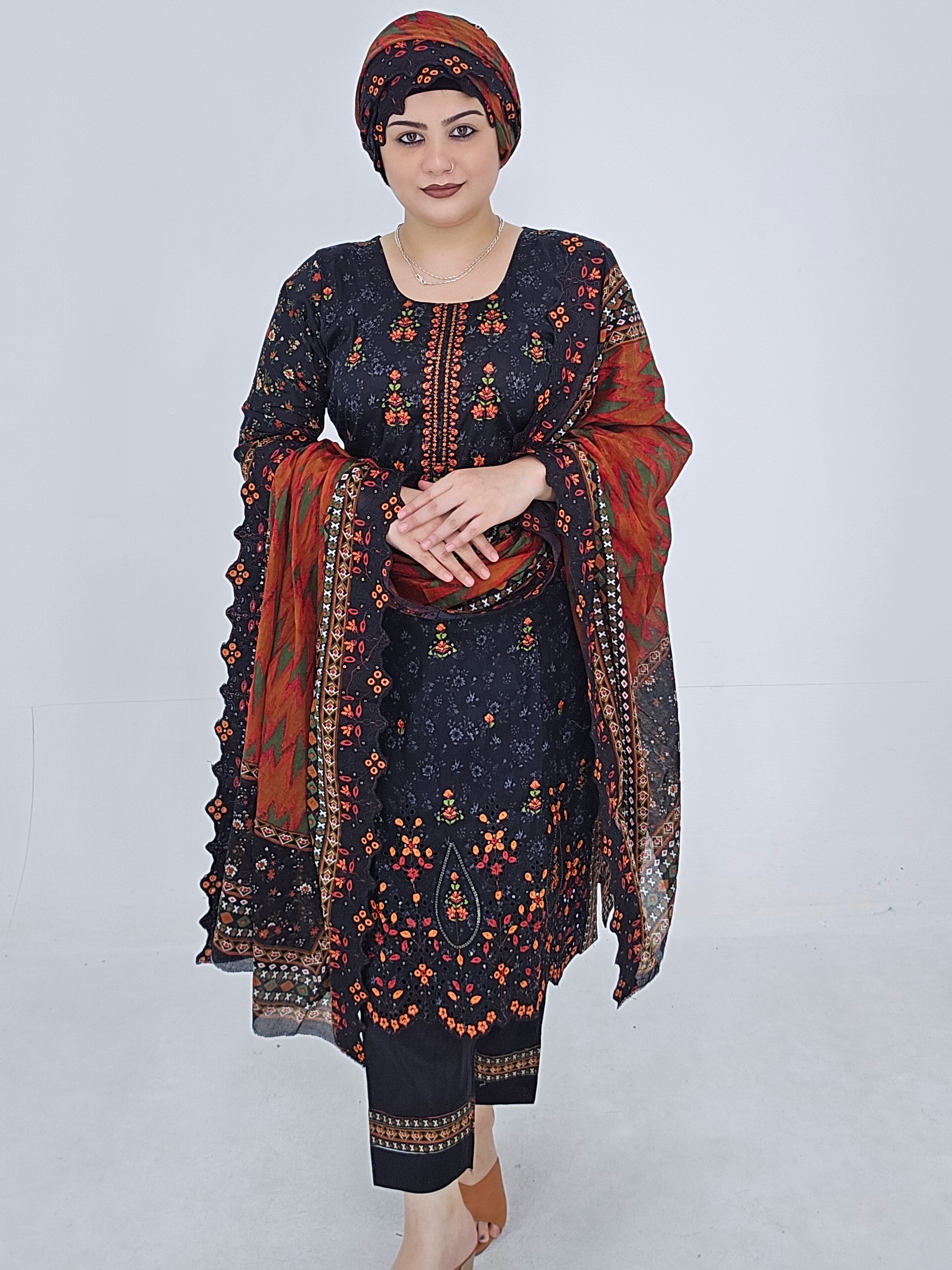 ✨🔥Premium Elegant Gliter & Midnight Floral Sequence Cotton Three Pieces✨🔥