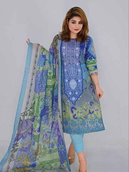 Cotton Embroidered 3-Piece Unstitched Dress For Women