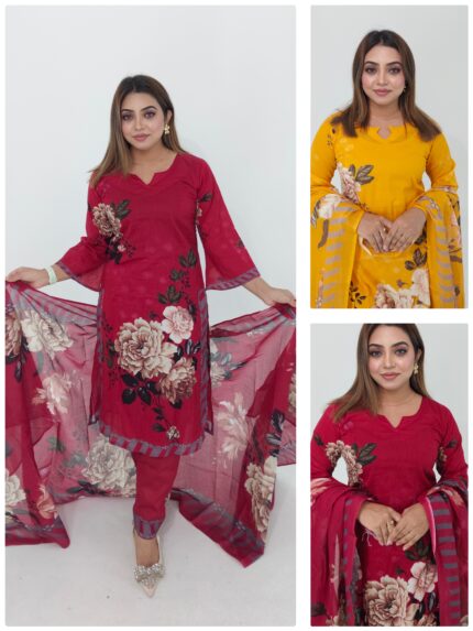 Cotton Lawn Floral Print 3 Piece