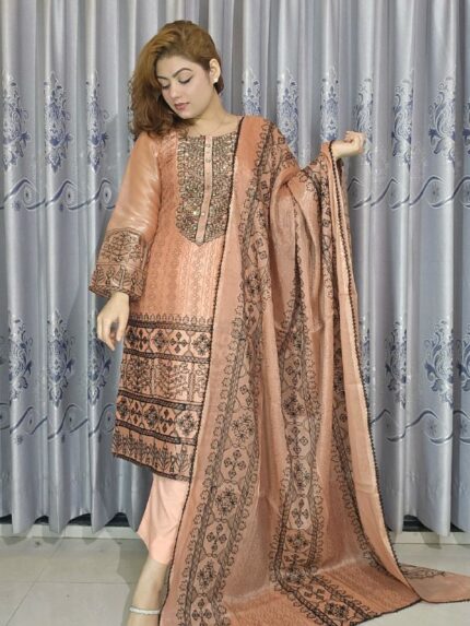 Premium Unstitched Suit Kashmiri Mirror Work Jimmy Choo Fabric