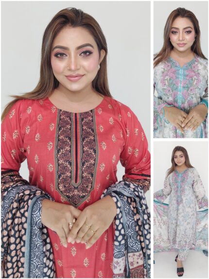 Cotton Embroidery with Mirror Work Unstitched 3-Piece