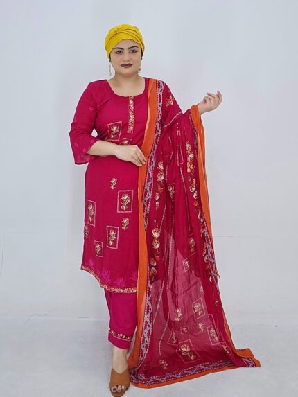 Comfortable Cotton 3-Piece Unstitched Dress with Chunri Print