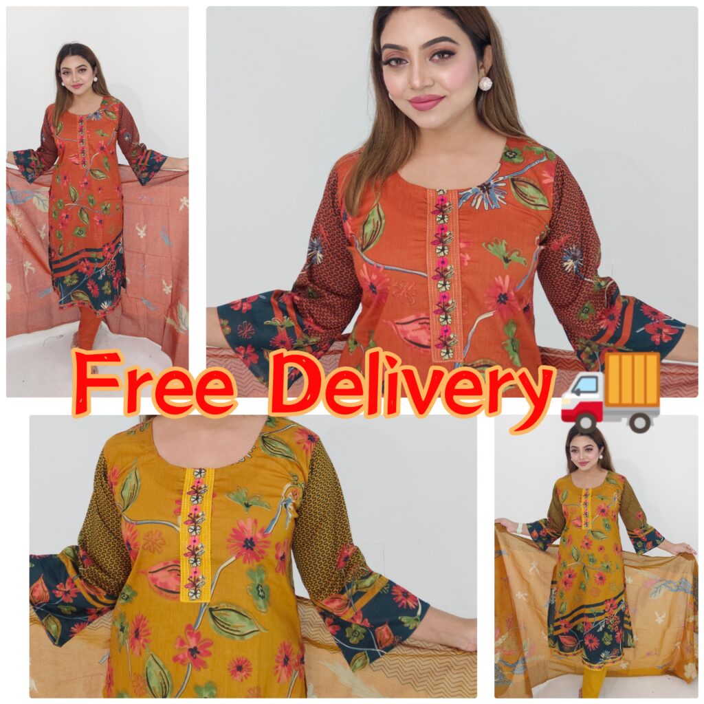 1,150.00৳Cotton three-piece Suits! Embroidered Kameez, Printed Dupatta