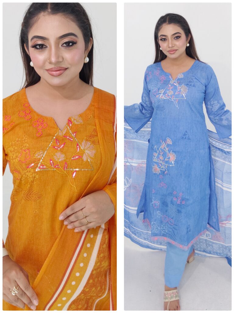 Unstitched Cotton 3-Piece Dress – Embroidery & Sequence Work