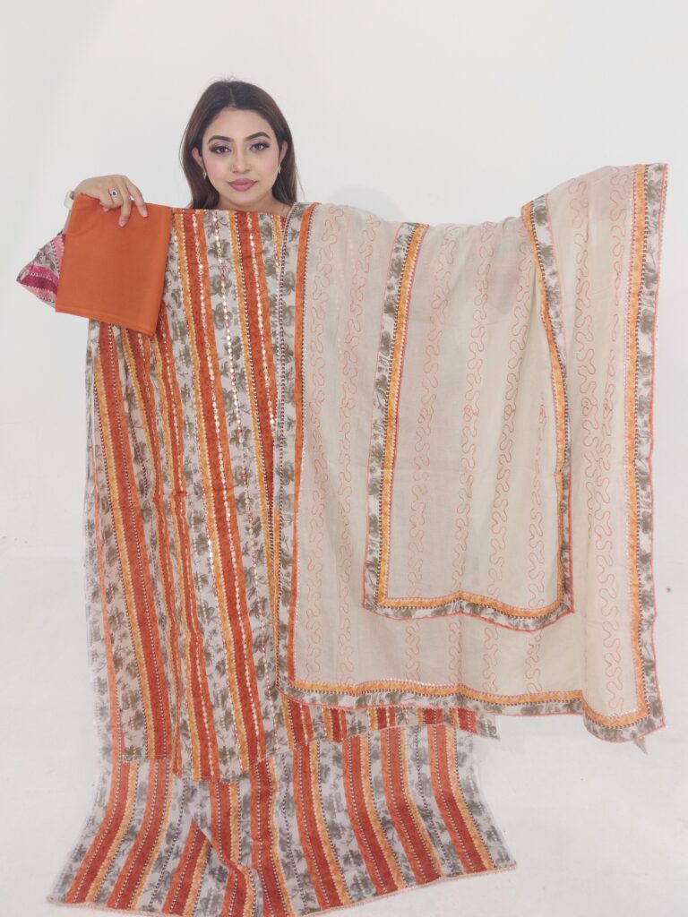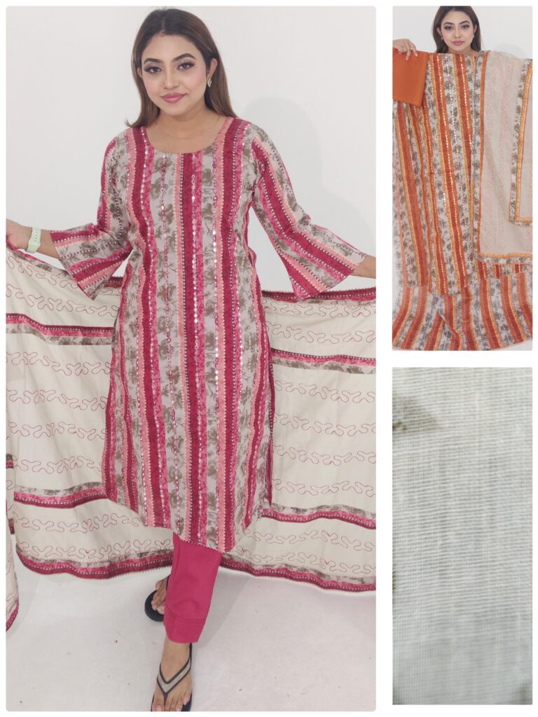 Unstitched Cotton 3-Piece Dress – Embroidery & Sequence Work