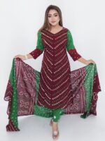 The highlight of this set is the chunri-inspired batik print, which adds a unique artistic flair to the outfit. The vibrant patterns create a timeless look, making this dress a versatile choice for festive occasions, casual outings, or even as a graceful daily wear option.