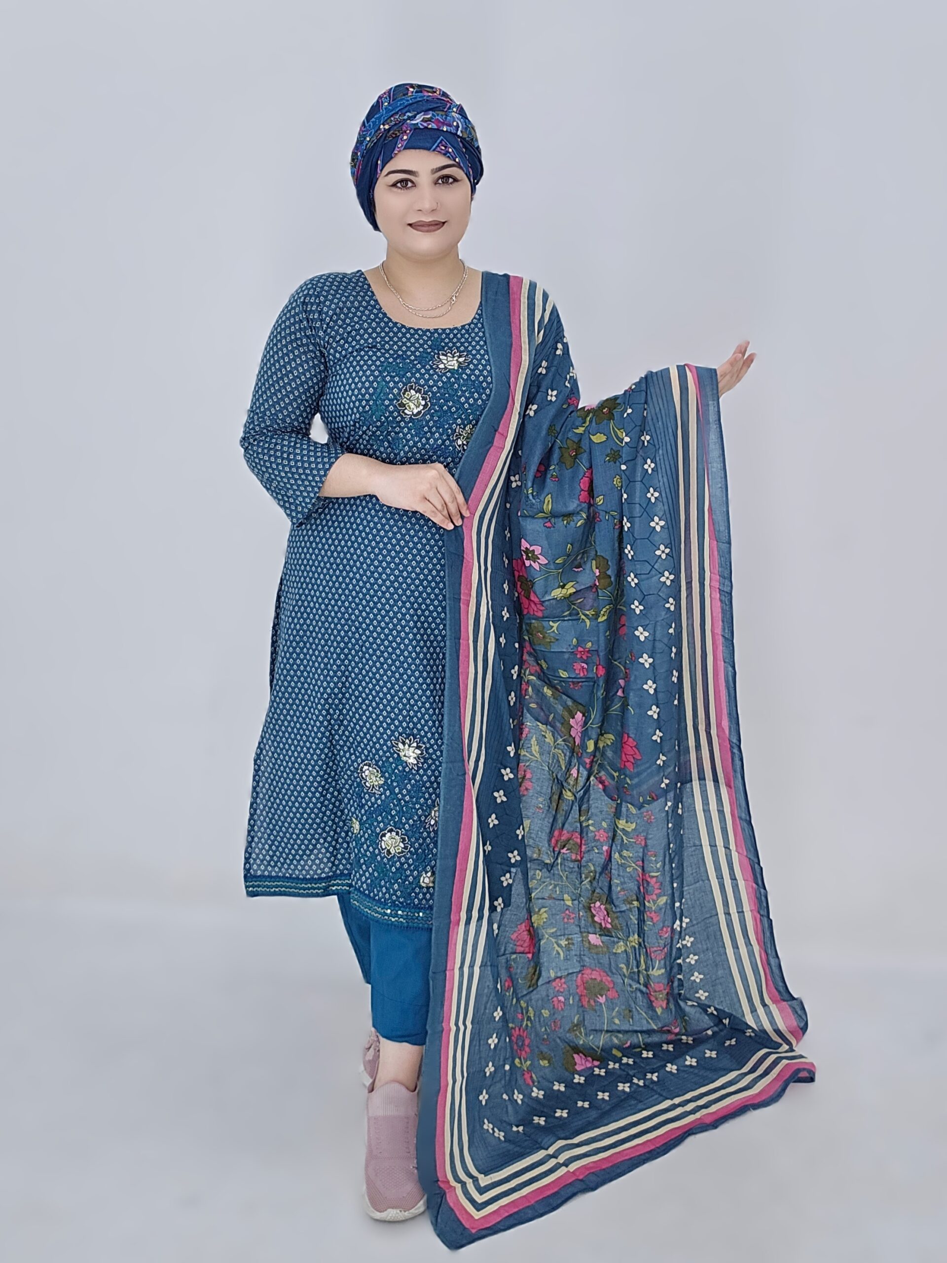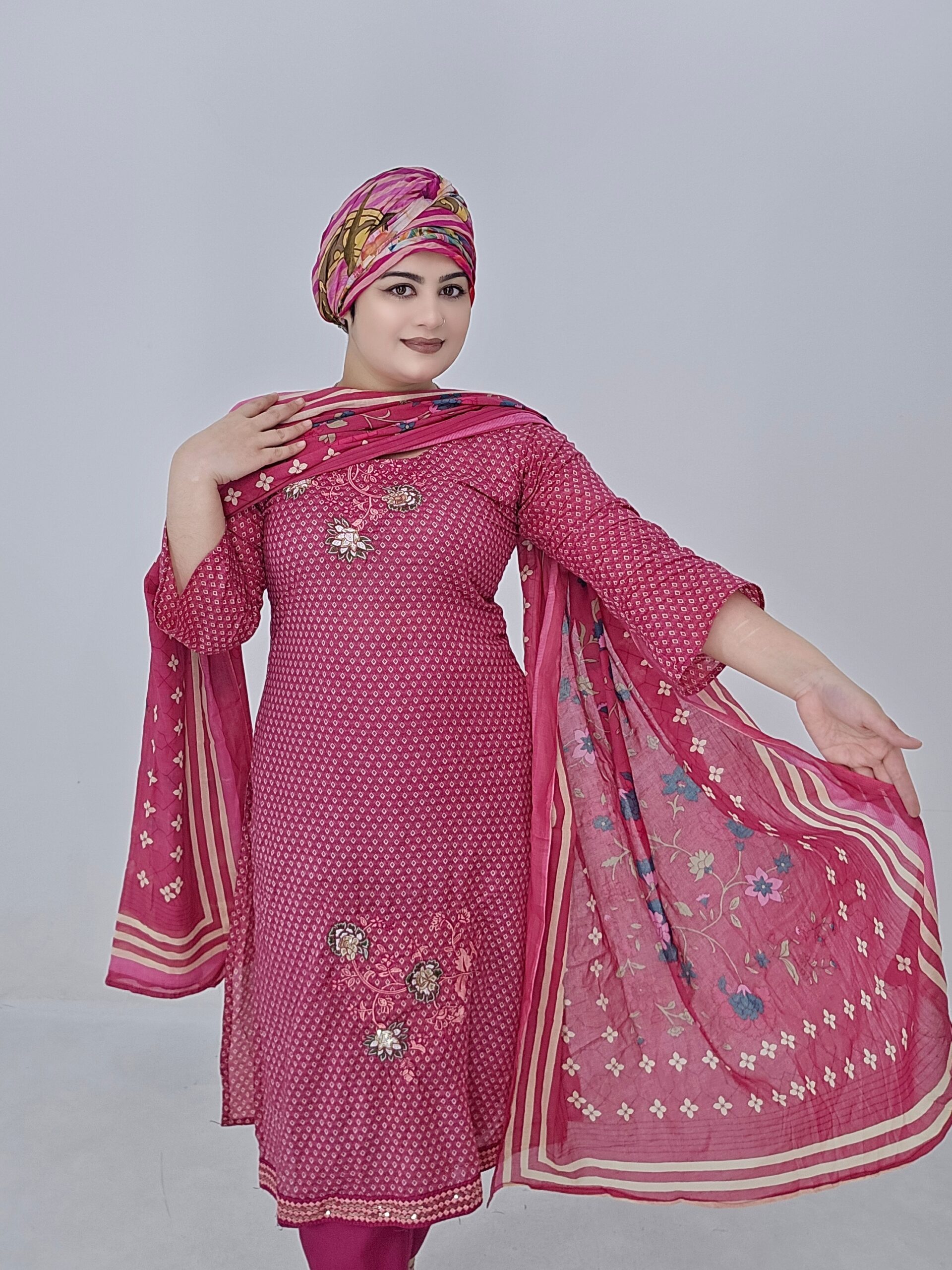 Ideal for daily wear, office use, and casual outings, this ganga cotton 3 piece is a perfect combination of comfort and style for modern women.