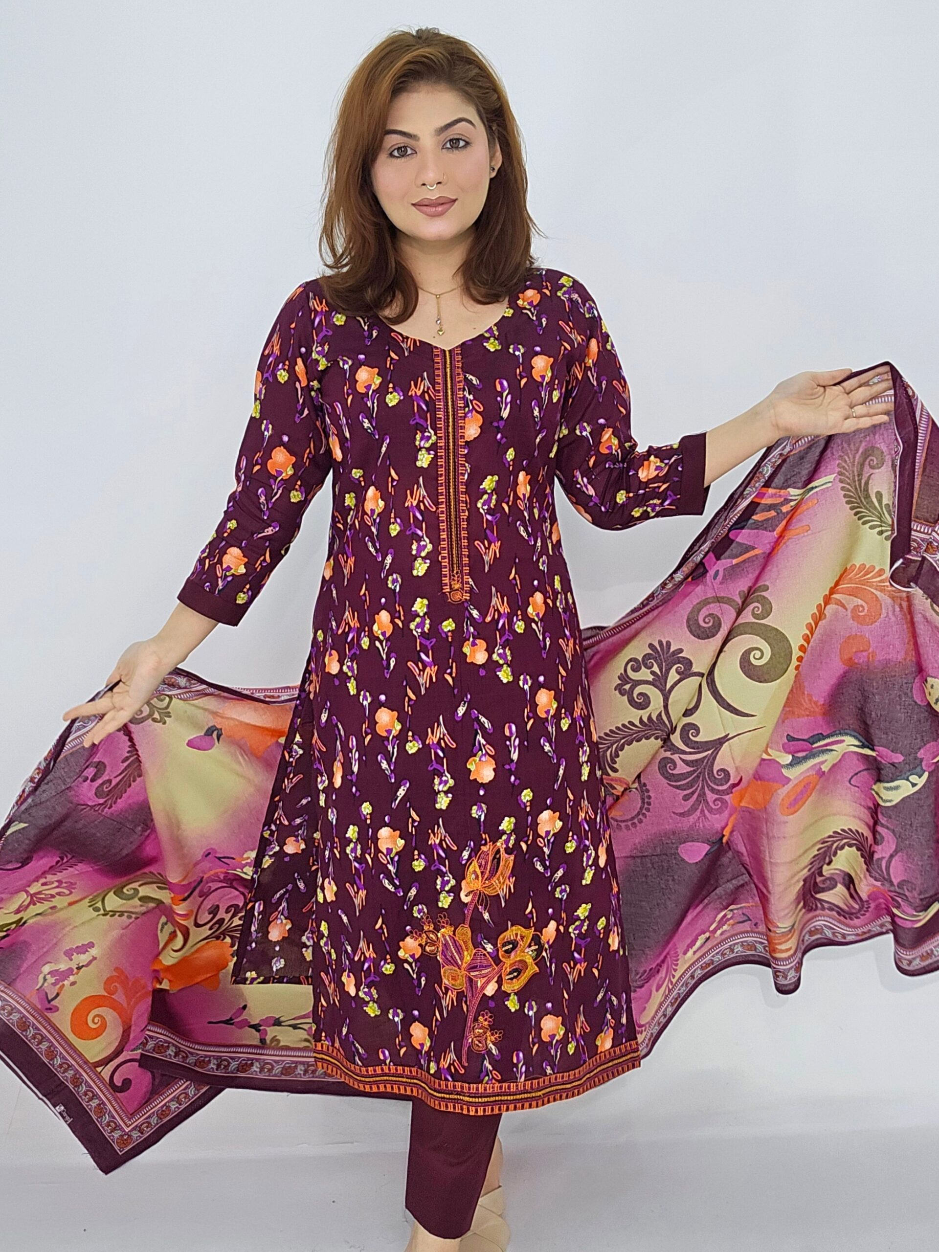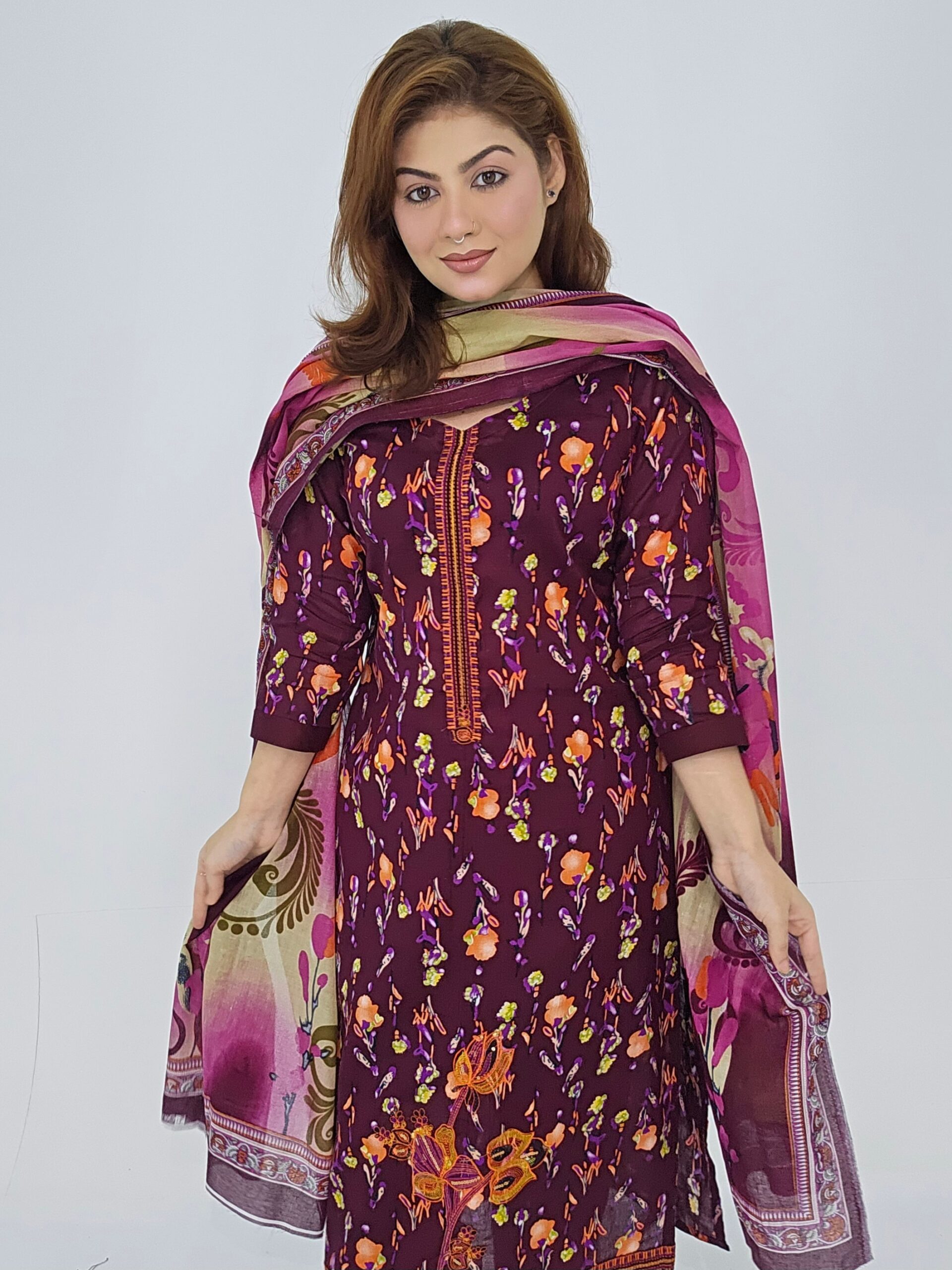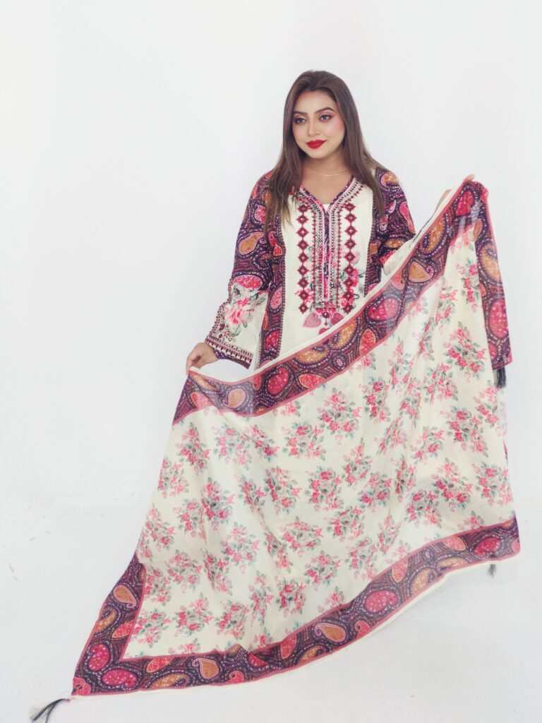 Elegant Unstitched Cotton Three-Piece Dress – Digital Print Dupatta