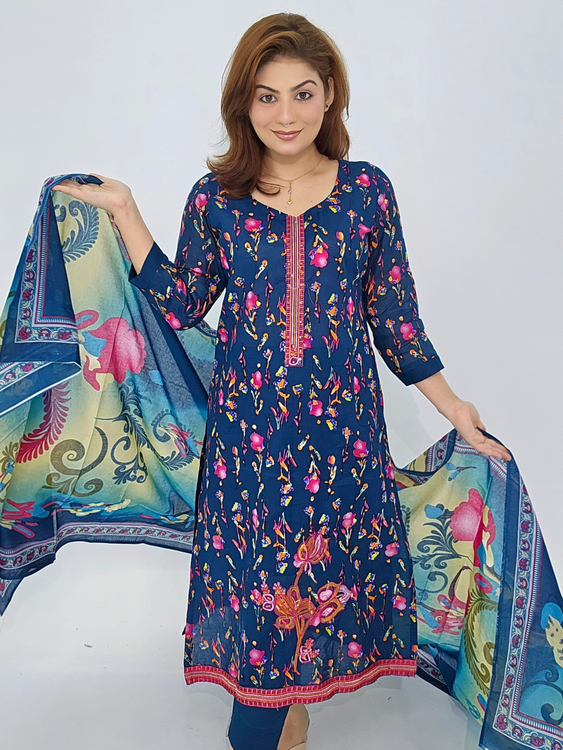 Pakistani Catalogue Inspired Printed Cotton Readymade 3 Piece