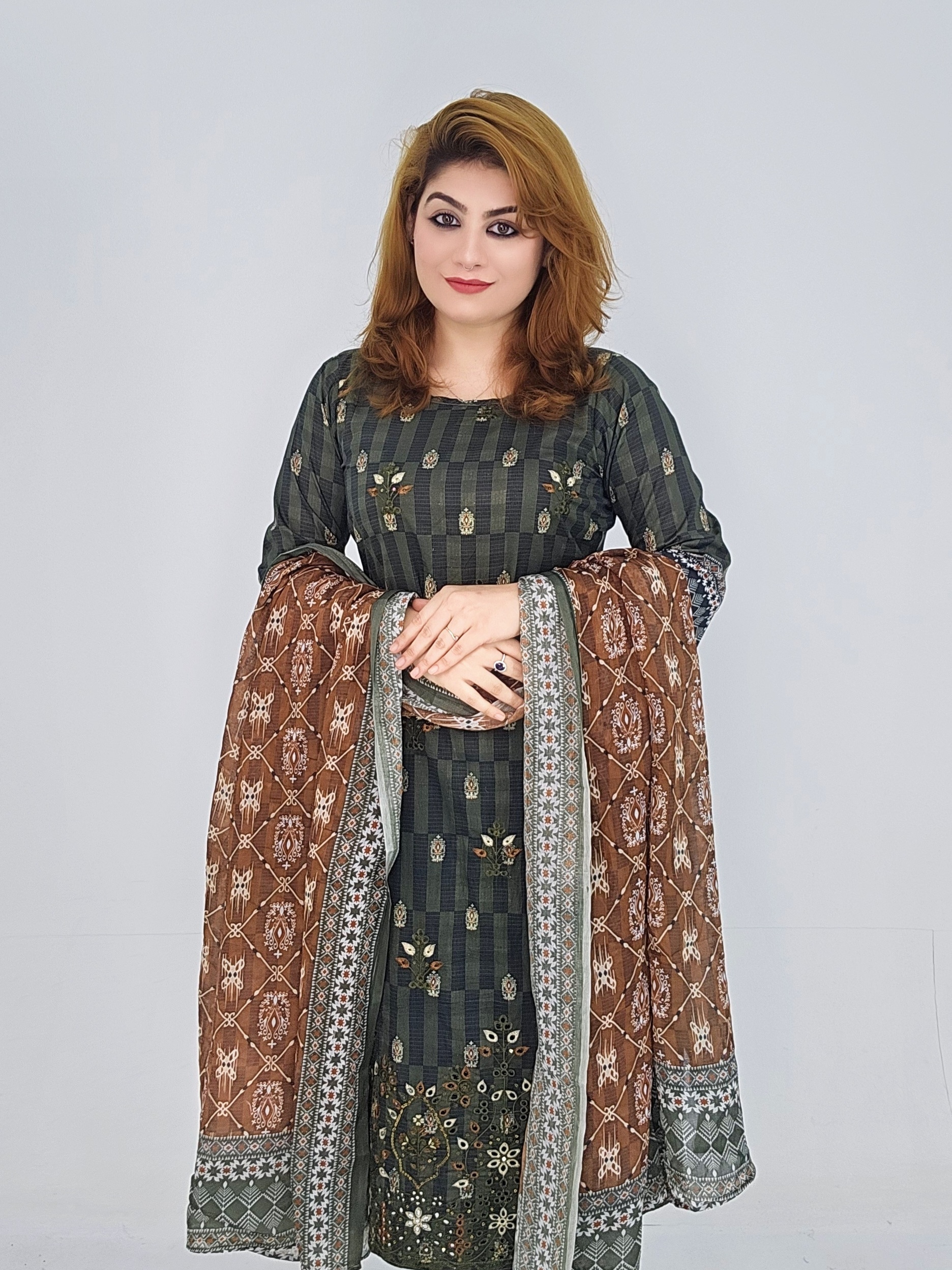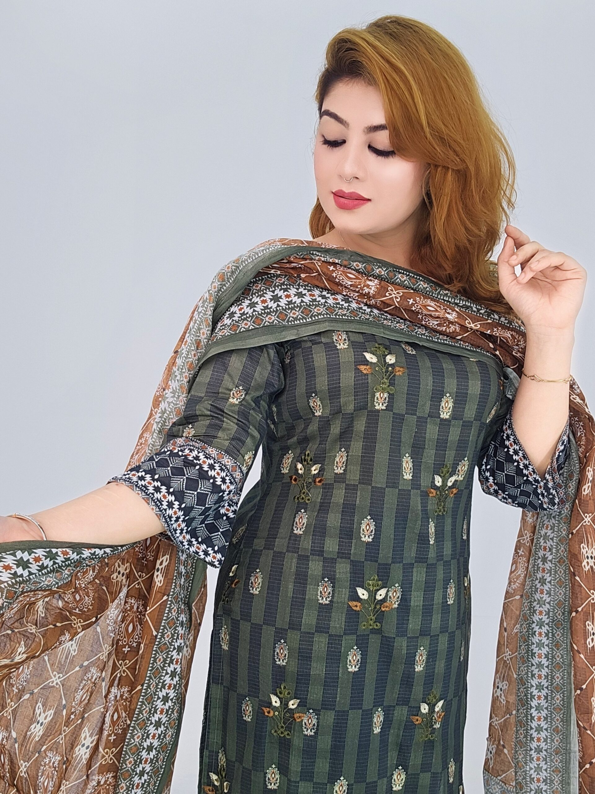 Boutique Cotton fabric with digital print and Embroidery work