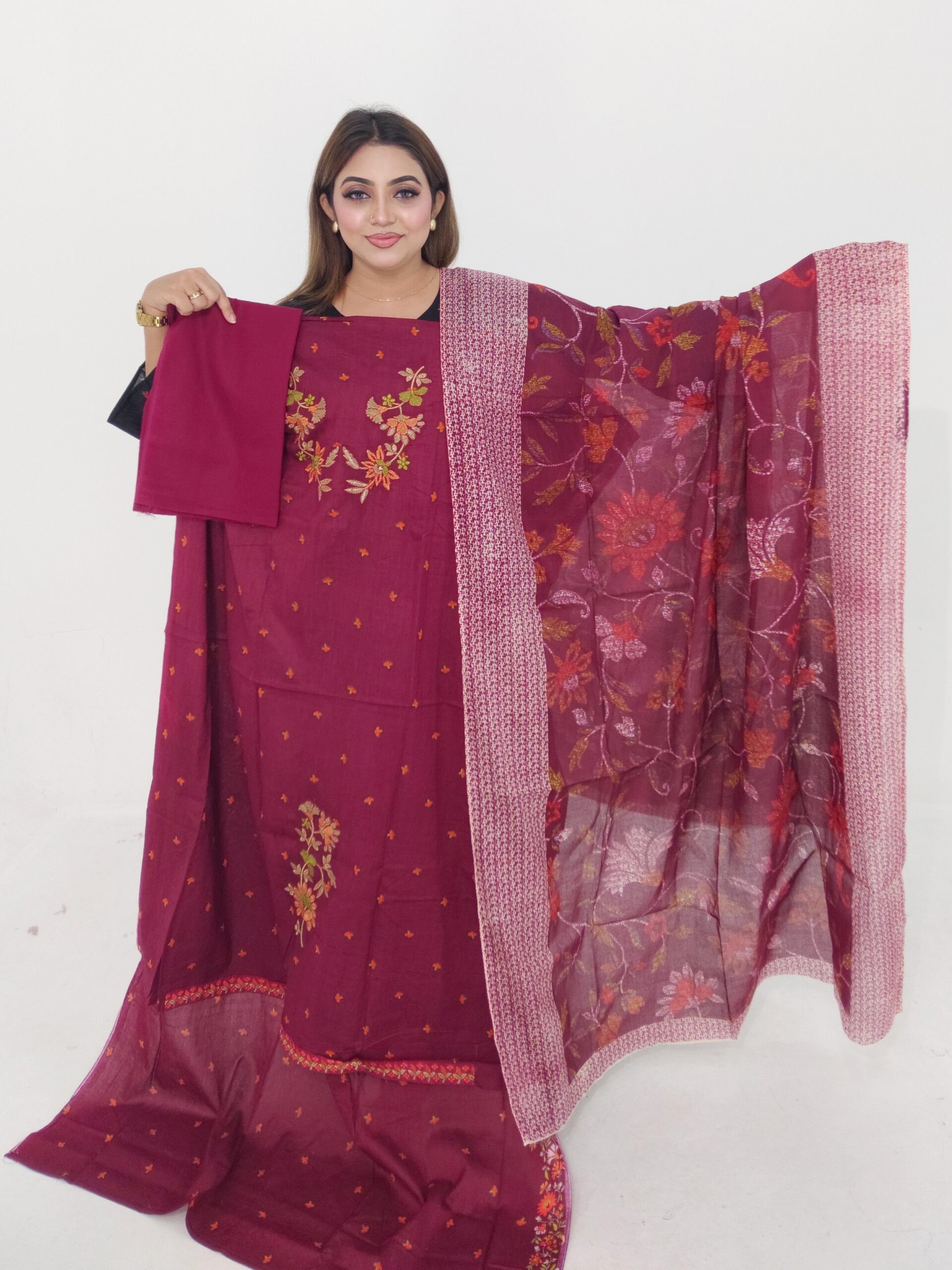 Comfortable Cotton Embroidered Kameez, Dupatta & Pant Set