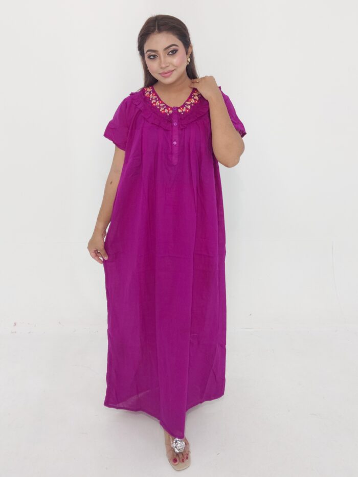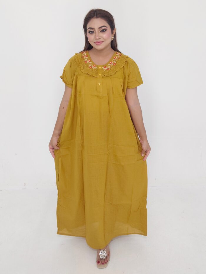 Maxi dress, Button style outfit, Embroidered dress, Affordable fashion BD, Women’s casual wear, Stylish long dress, Daily wear collection, Bangladesh fashion, New arrival dress, Comfortable maxi
