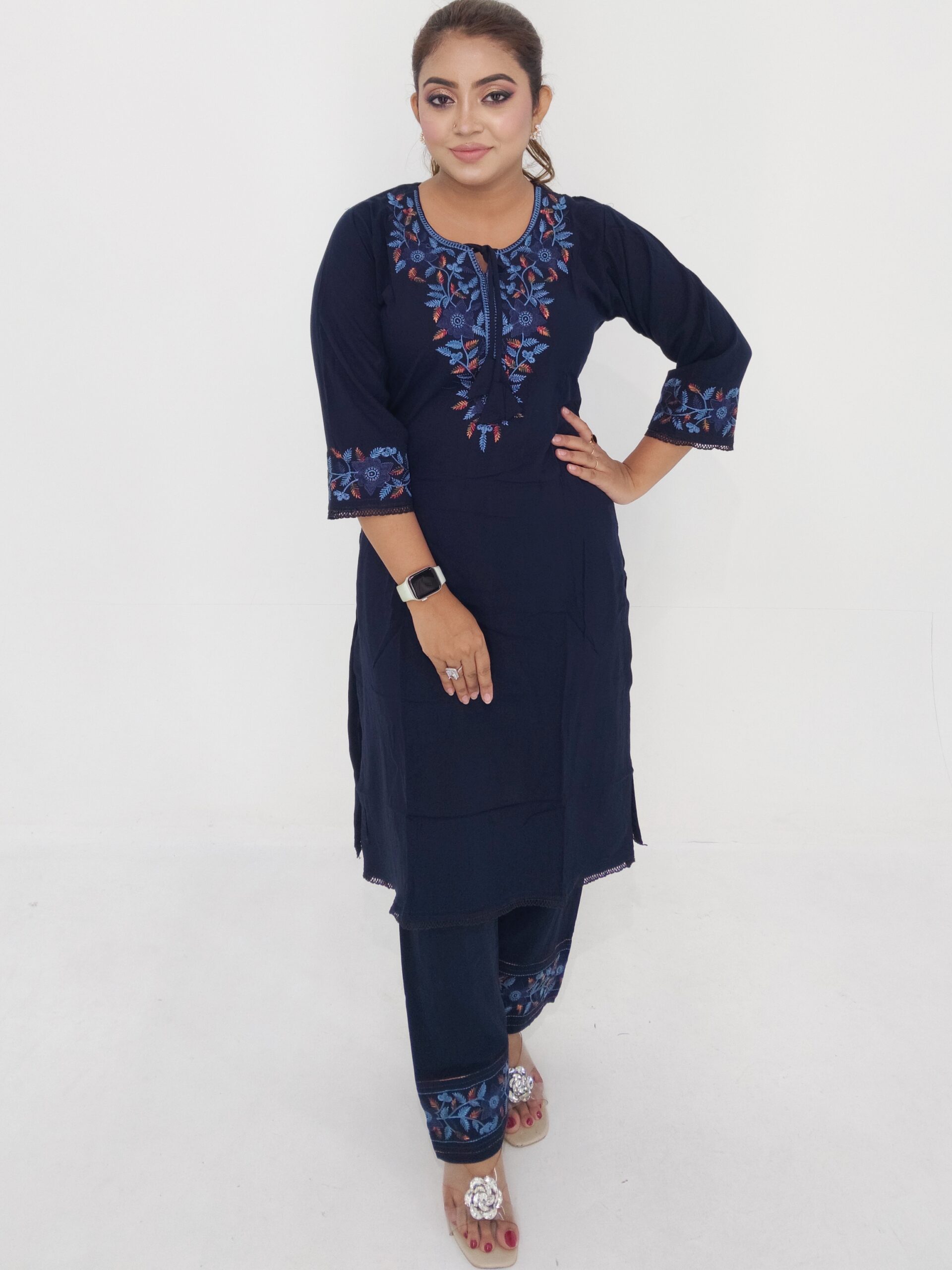 Made from premium quality China Lilen fabric, this set offers a soft and breathable texture, perfect for both daily wear and casual outings. The beautiful embroidery work on the kameez adds a touch of sophistication, giving you a stylish look effortlessly.