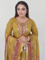 The kameez features beautiful Ari embroidery combined with stone work, giving the outfit a rich and graceful boutique look. The delicate detailing adds elegance without making the dress heavy. The plain cotton salwar or pant ensures comfort and balance, while the matching cotton dupatta completes the outfit perfectly.