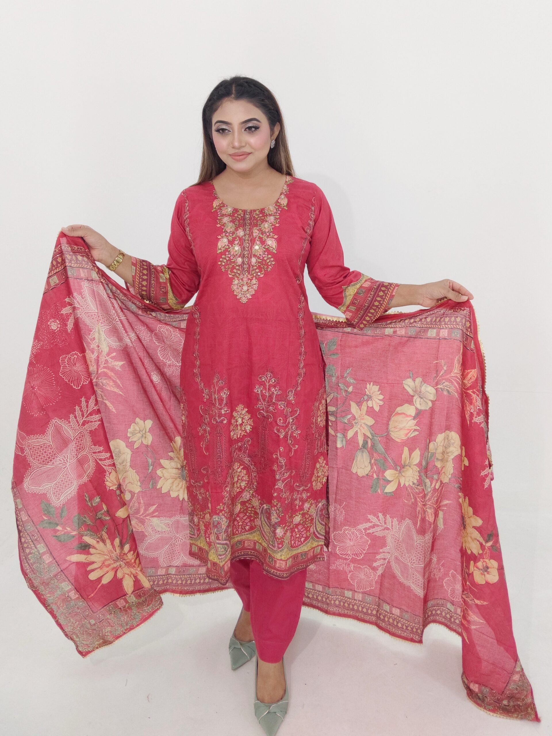 Ideal for casual wear, family gatherings, small festive occasions, or elegant daily use, this cotton unstitched 3 piece offers a perfect blend of comfort, style, and traditional beauty.