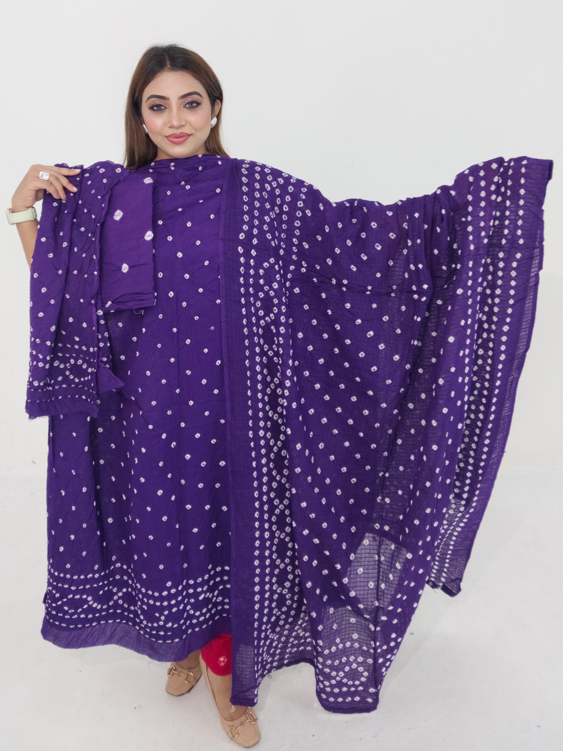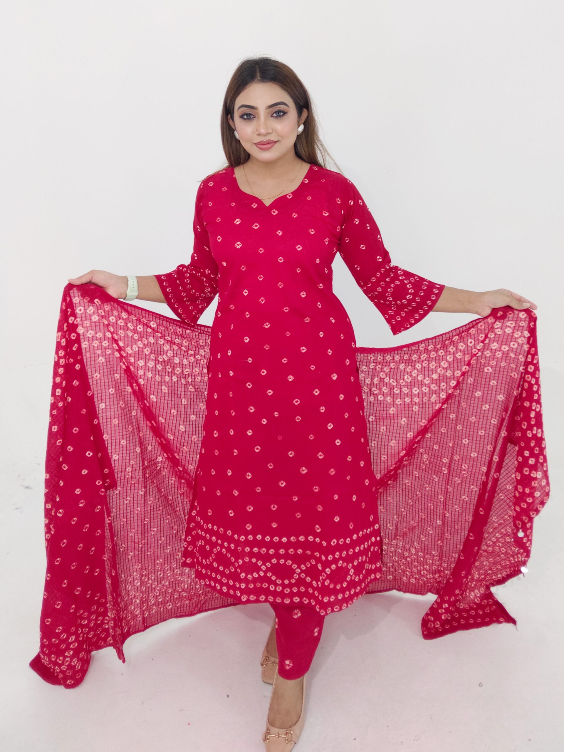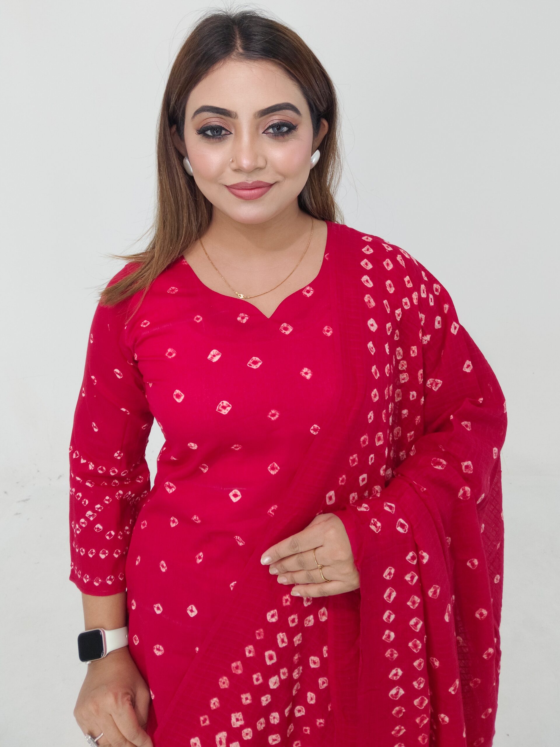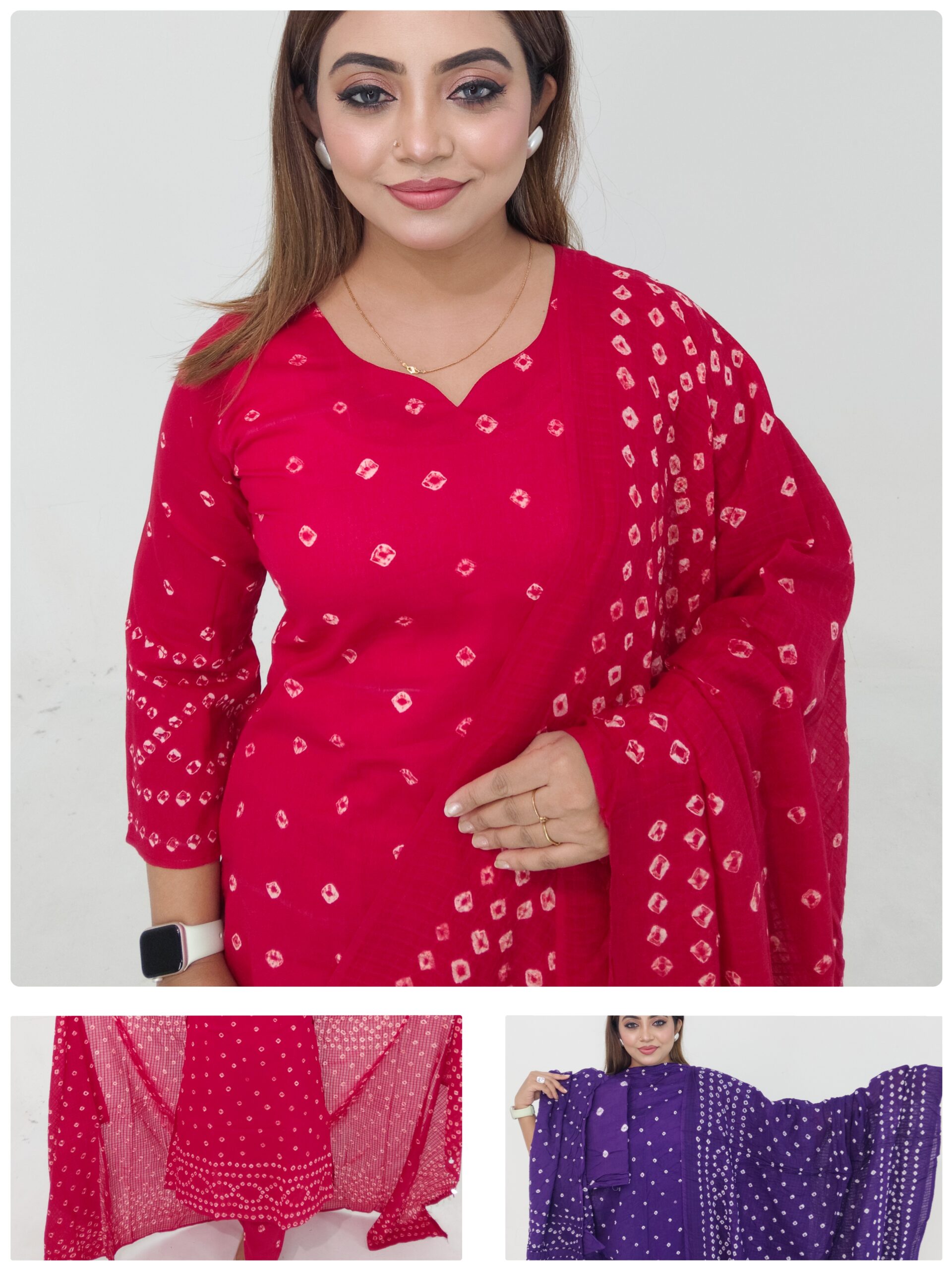 Comfortable Cotton 3-Piece Unstitched Dress with Chunri Print
