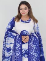 The elegant batik print gives the kameez a graceful ethnic appeal, while the matching salwar or pant and coordinated dupatta complete the look beautifully. With a generous body size up to 76 inches and a 48-inch kameez length, this unstitched 3 piece allows you to stitch the dress according to your preferred fitting and style.