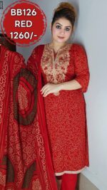 1,250.00৳ Cotton three-piece Suits! Embroidered Kameez, Printed Dupatta