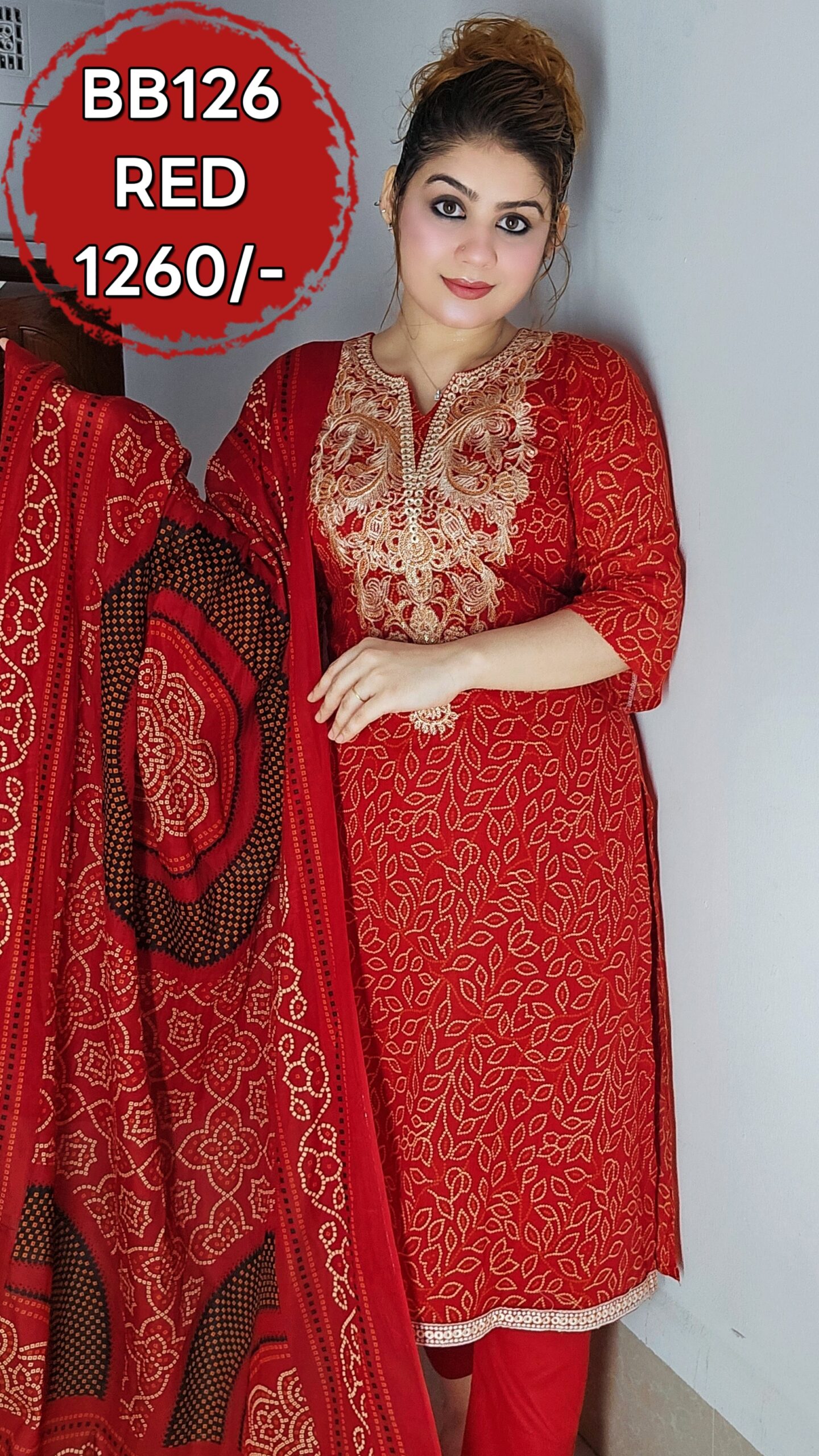 Comfortable Cotton Embroidered Kameez, Dupatta & Pant Set