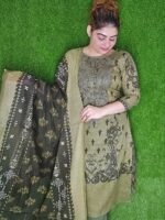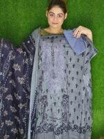 Elevate your wardrobe with our beautiful cotton unstitched three-piece dress, showcasing elegant embroidery work. This set provides ample fabric for kameez (74″ body, 47″ length), dupatta, and salwar, ensuring a perfect fit and comfortable wear. Shop our latest collection for timeless style