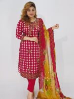 This unstitched dress set includes three pieces: kameez, dupatta, and salwar, allowing you to tailor the outfit perfectly to your size and preference. The body size of 72 inches and kameez length of 47 inches ensure flexibility for custom fitting. The intricate embroidery and sequence work on the kameez adds a touch of elegance and sophistication, creating a luxurious look that stands out.