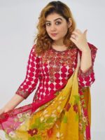 The dupatta, made with fine cotton, features delicate patterns and sequence highlights, giving a graceful finish to your outfit. Pair it with the plain cotton salwar for a balanced, stylish ensemble.