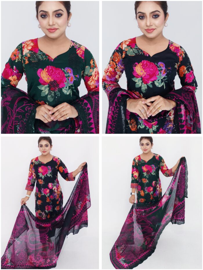 With a body size up to 74 inches and length of 47 inches, this dress material is suitable for a wide range of body types, ensuring both comfort and style. The cotton fabric ensures breathability, making it ideal for long wear during any season, especially in Bangladesh’s warm climate.