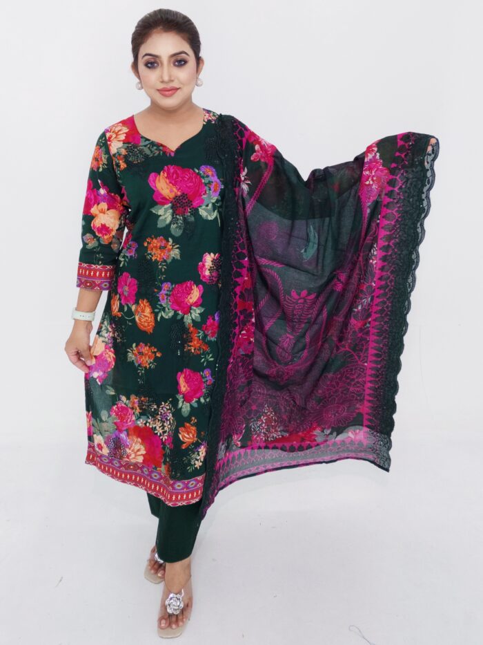 Fabric: 100% Cotton (Kameez + Dupatta + Salwar)