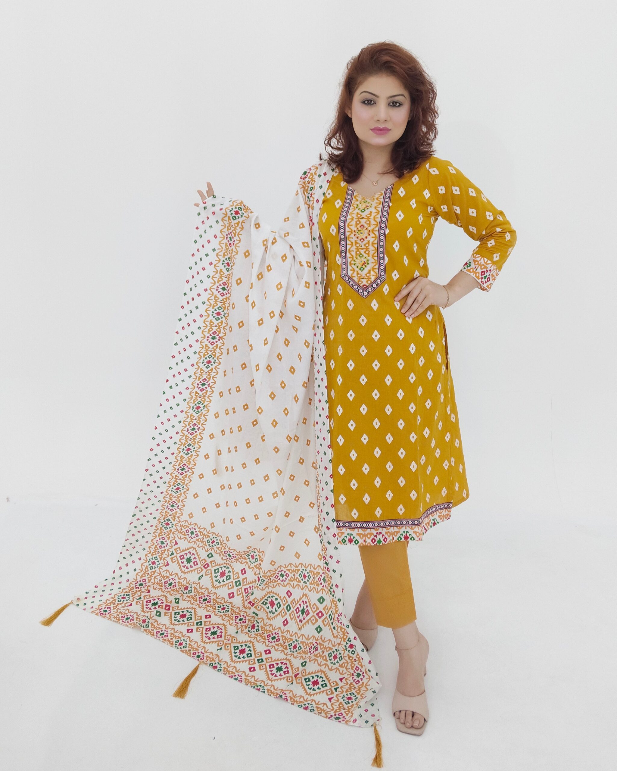 Unstitched 3 Piece (Kameez + Pant + Dupatta)