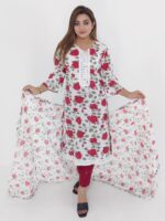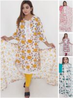 Breathable Cotton Kamij Set with Plain Pant & Printed Dupatta