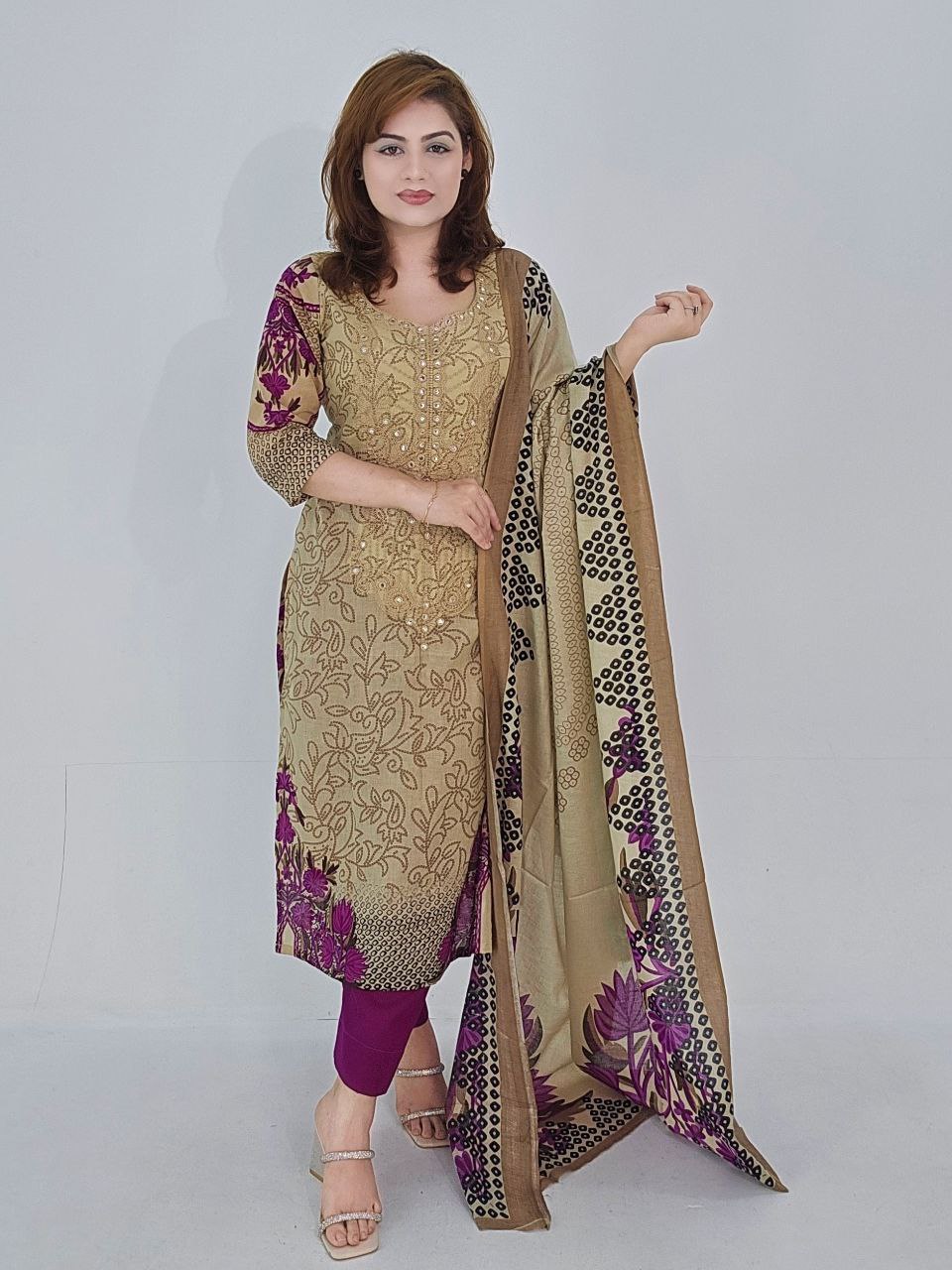 Elegant Unstitched Cotton Three-Piece Dress – Digital Print Dupatta