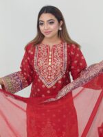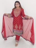 Add elegance to your everyday and festive wardrobe with this Cotton Readymade 3 Piece with Afghan Work. Crafted from breathable cotton fabric, the kameez and pant offer all-day comfort, while the georgette dupatta adds a graceful and stylish touch.