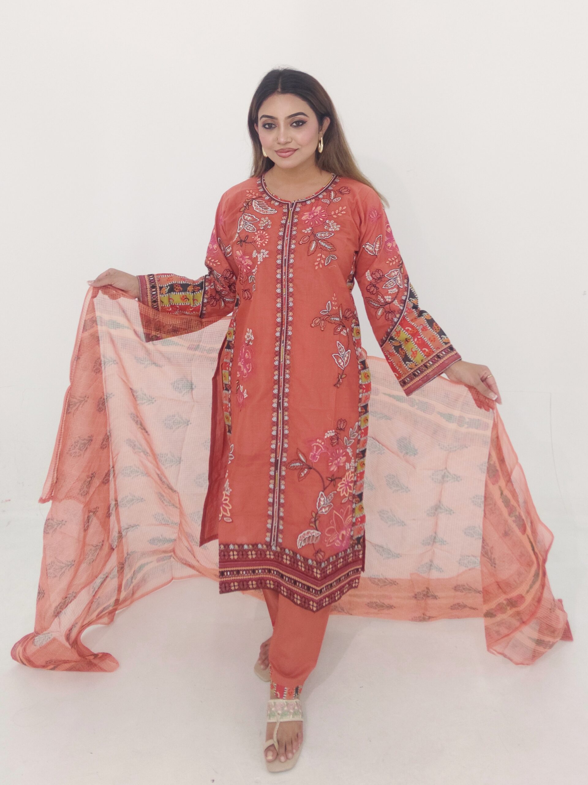 Perfect for regular use, casual outings, and small gatherings, this cotton readymade 3 piece is a must-have addition to your wardrobe.