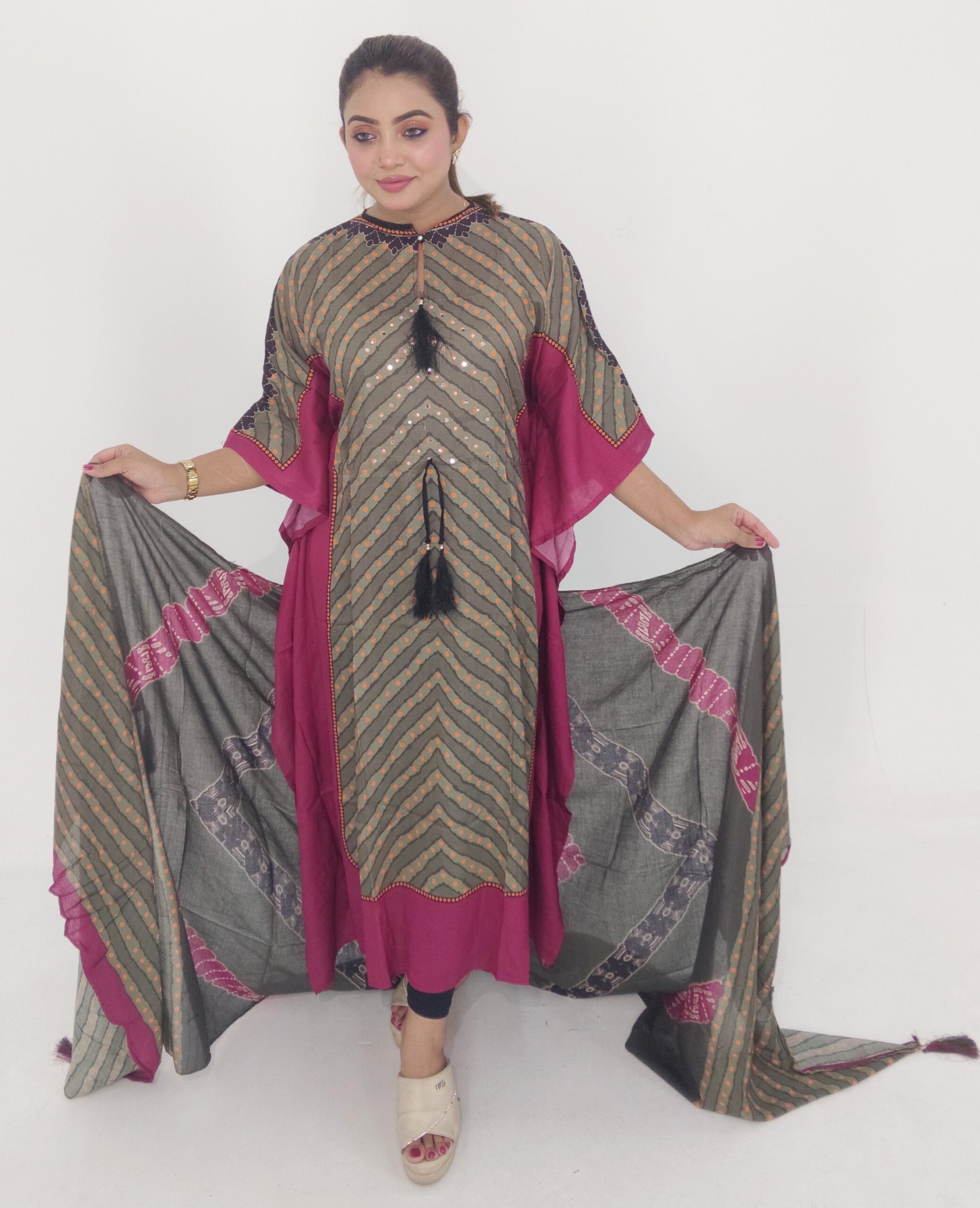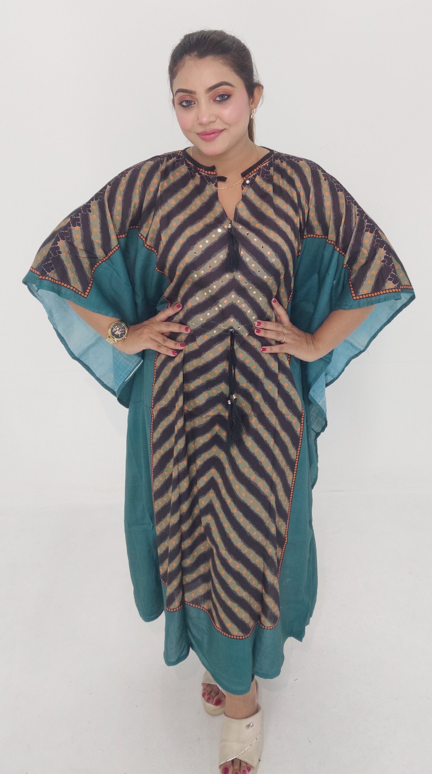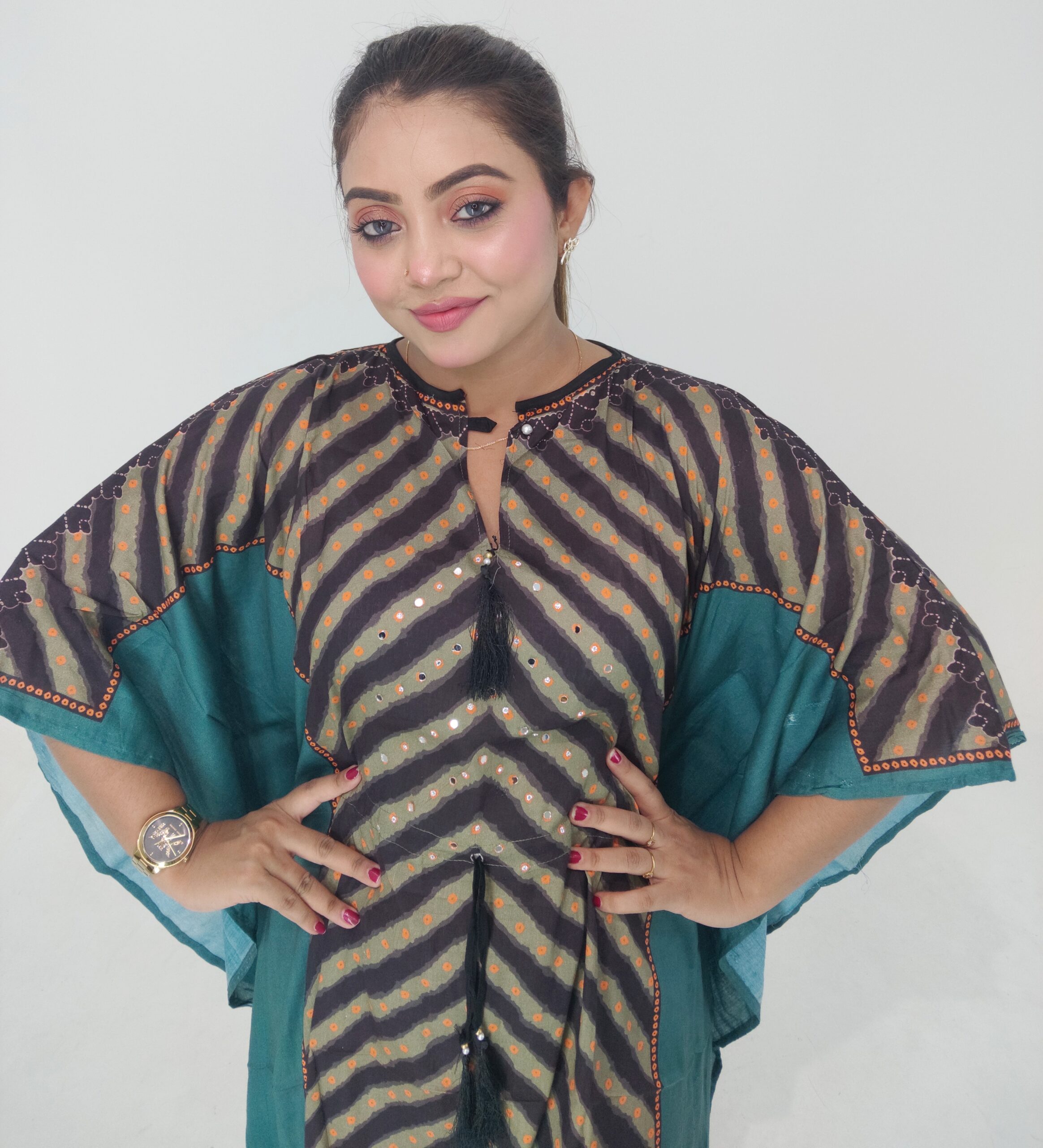 Step into effortless elegance with our Cotton Mirror Work Readymade Kaftan 2 Piece, designed for women who love comfort and style in one outfit. Crafted from premium-quality cotton, this kaftan set offers a soft, breathable texture perfect for everyday wear, festive occasions, or casual gatherings.