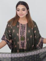 Designed in a free-size fit that comfortably accommodates up to 46 inches, this kaftan offers a relaxed yet flattering silhouette. The 46-inch length provides graceful coverage and flow, making it ideal for daily wear, family programs, or casual outings.