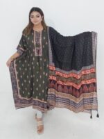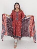 This Cotton Readymade Kaftan 2 Piece is a perfect blend of comfort and style. Made from soft and breathable cotton fabric, this outfit ensures ease of wear throughout the day. The delicate mirror work adds a touch of elegance, making it suitable for both casual and festive occasions.