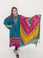 Breathable Cotton Kamij Set with Plain Pant & Printed Dupatta