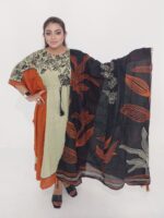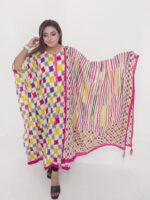 The kaftan features a free-size design that fits up to 46 inches, ensuring a relaxed yet flattering silhouette for every body type. With its 45-inch length, it gives a graceful drape that’s both modest and stylish. Paired with a matching dupatta, this 2-piece set creates a timeless ethnic look perfect for casual gatherings, festive events, or comfortable daily wear.