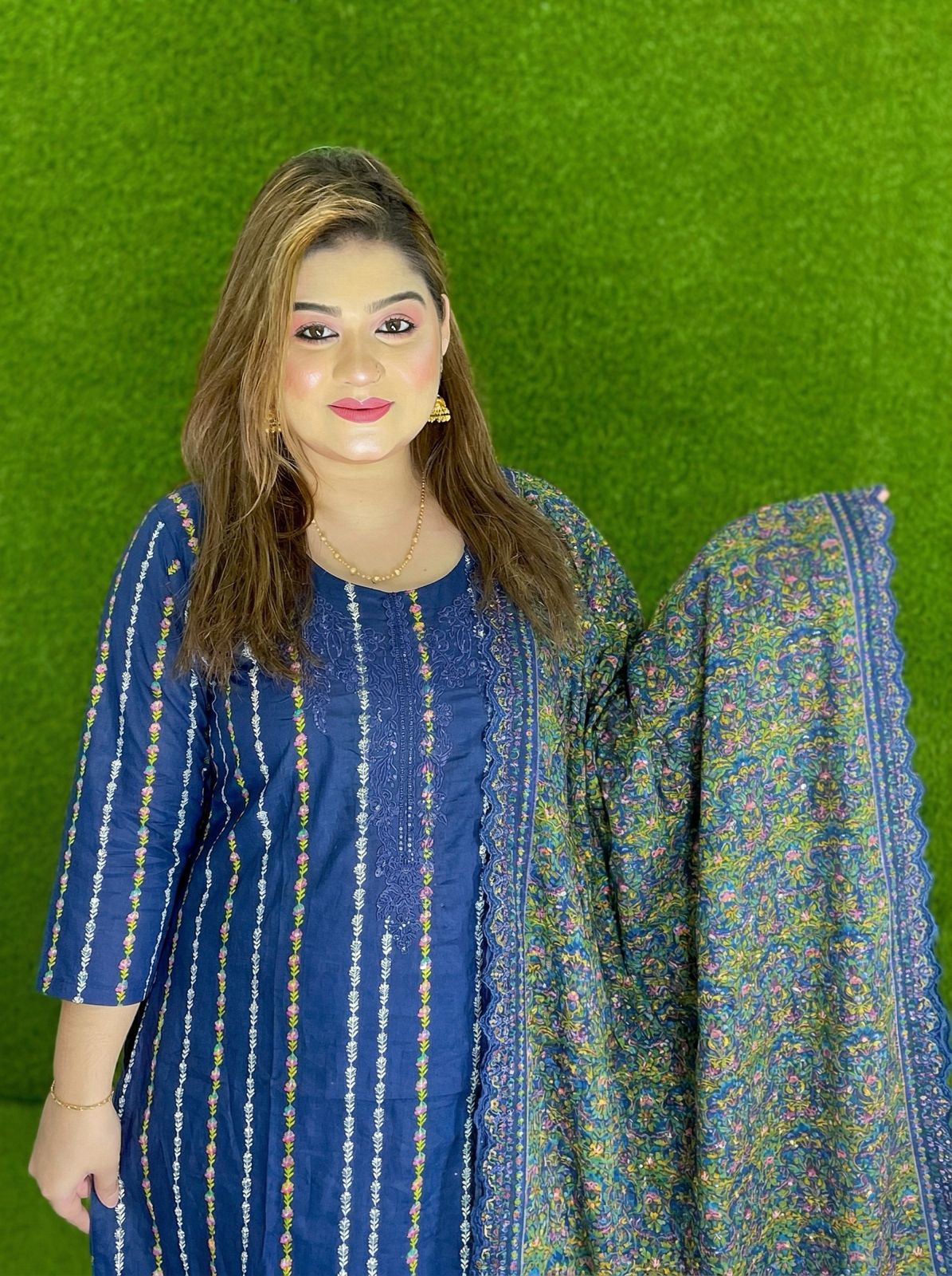 This outfit features premium quality cotton fabric combined with intricate embroidery and delicate sequence work, giving it a graceful and eye-catching look. Whether you’re attending a casual gathering, festive event, or looking for everyday wear, this dress is a perfect choice.