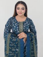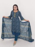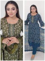 The kameez features attractive digital prints with embroidery work, adding a refined touch to the overall look. The matching cotton salwar/pant and dupatta complete the outfit beautifully. As an unstitched set, it allows you to customize the fitting and design according to your preference.