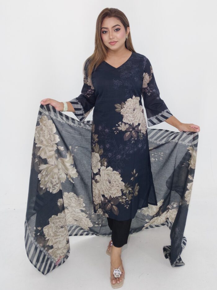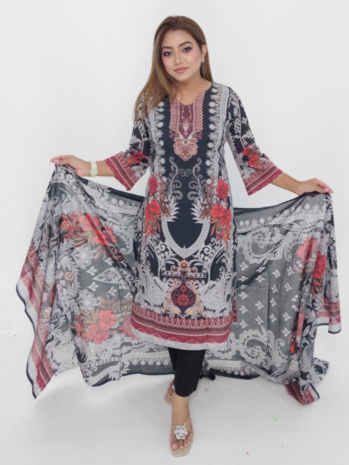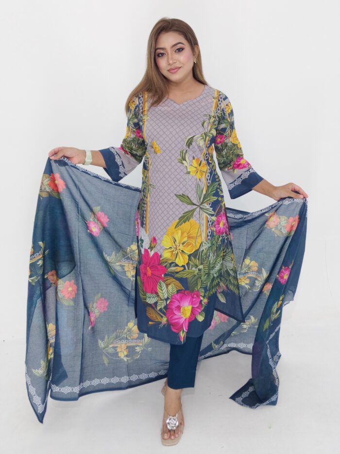 Elevate your wardrobe with this Premium Digital Printed Cotton Lawn Dress, exclusively available at Aroby’s Collection. Designed with care, this outfit brings together elegance, comfort, and versatile style for women who love both tradition and modern fashion.