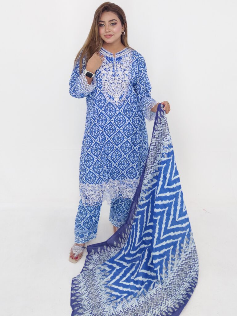 Beautiful digital printed cotton lawn 3 piece dress. Soft, breathable fabric perfect for everyday wear or special occasions. Premium quality and elegant design.