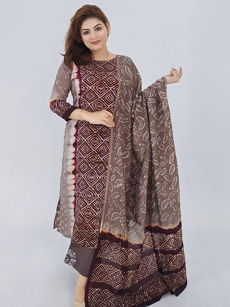 Upgrade your wardrobe with this Ready Made Cotton Silk 2 Piece Dress, specially designed for modern women who value both comfort and elegance. The outfit is crafted from premium cotton silk fabric, giving it a soft and luxurious texture while ensuring breathability and ease of movement.