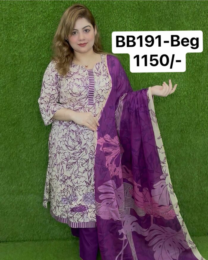 Elegant Unstitched Cotton Three-Piece Dress – Digital Print Dupatta