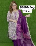 Elegant boutique-style unstitched three-piece made from 100% pure cotton. Features beautiful embroidery design for a graceful traditional look. Perfect for everyday wear or festive occasions.