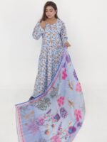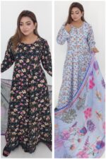 With body sizes ranging from 40–44 inches and a gown length of 51 inches, this outfit fits beautifully and ensures comfort for long wear. The high-quality Dubai Silk fabric adds durability while maintaining an elegant drape that flows gracefully with every step.