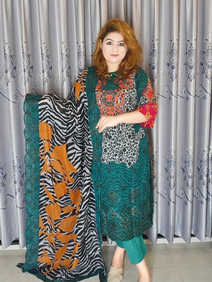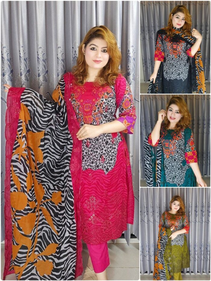 Tags: breathable fabric, comfortable unstitched suit, cotton ethnic wear, digital print cotton, embroidered casual wear, everyday cotton dress, versatile 3 piece