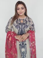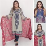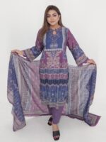 Elegant floral print cotton ready 3-piece dress designed for comfort and style. Perfect for casual and semi-formal occasions, available in multiple sizes (38–46) for a perfect fit.