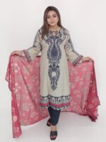 Elegant Unstitched Cotton Three-Piece Dress – Digital Print Dupatta