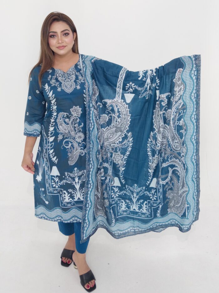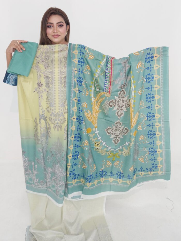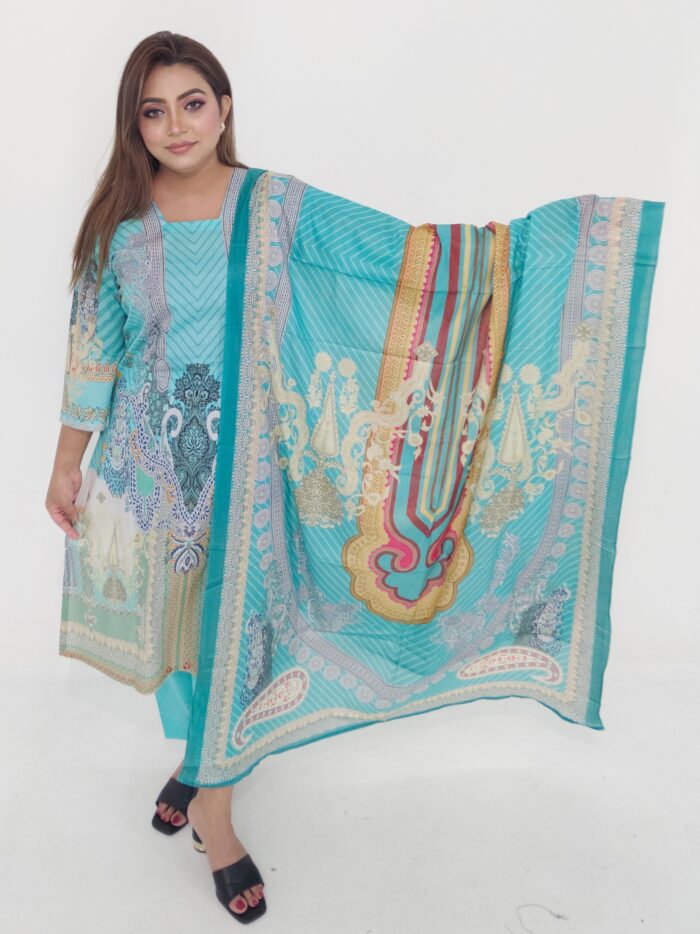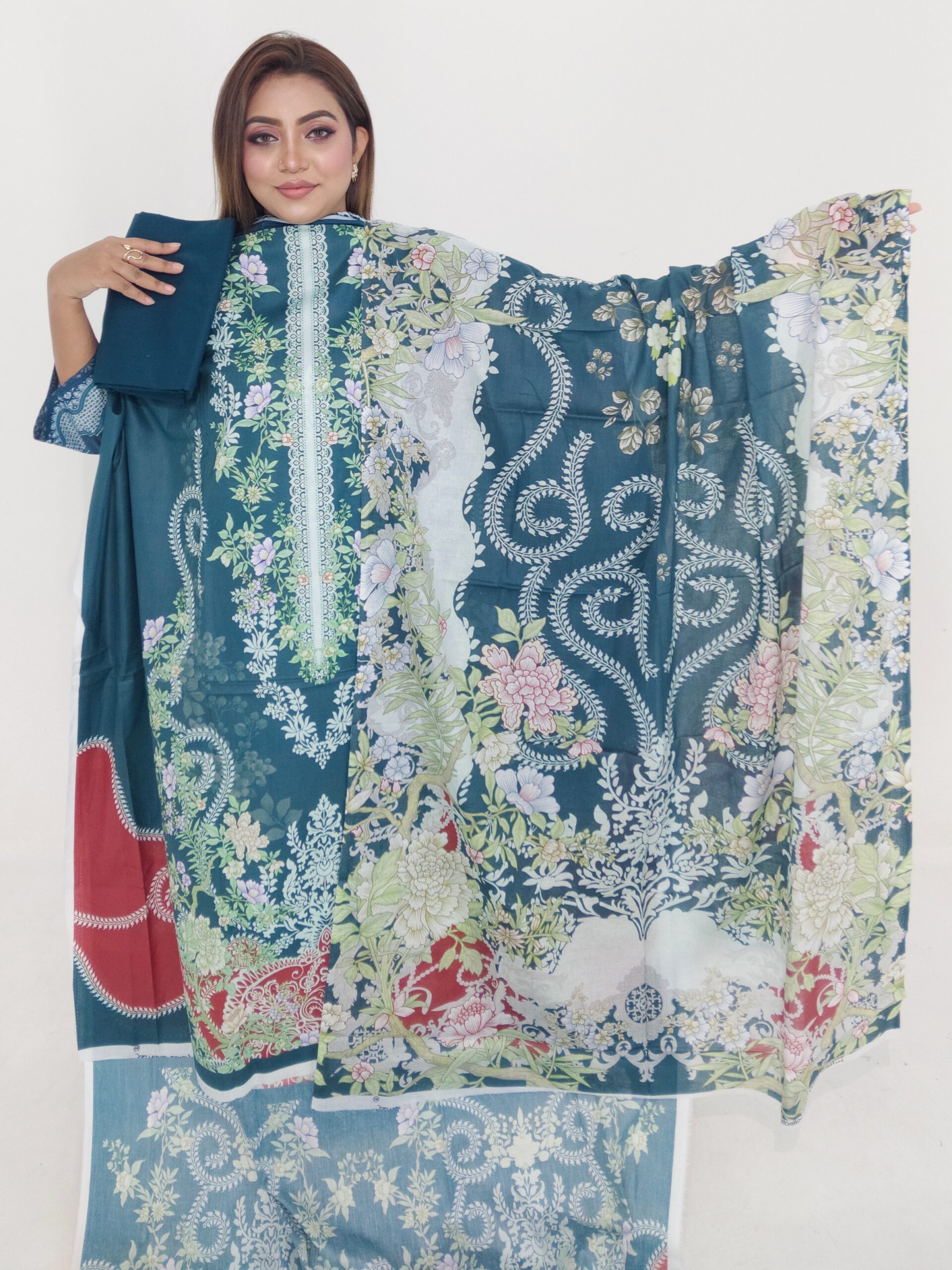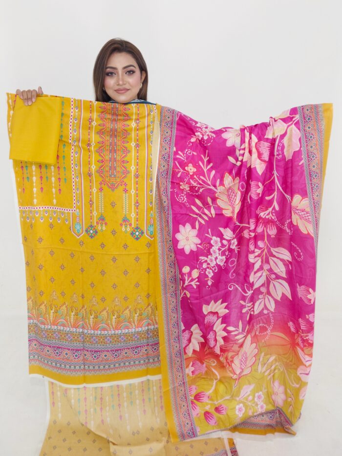 Elegant Unstitched Cotton Three-Piece Dress – Digital Print Dupatta